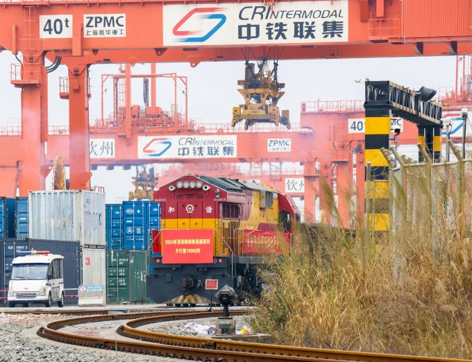 2024年西部陆海新通谈班列第10000列发车。(北部湾港集团供图)